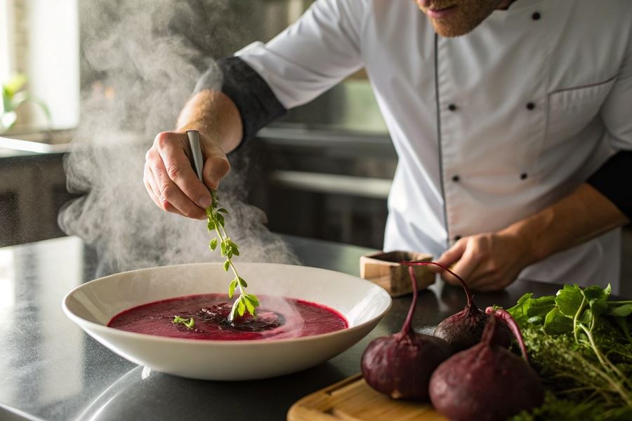 Profesjonaliści zwracają uwagę na temperaturę serwowania – zupa krem z buraków powinna być podawana ciepła, ale nie gorąca, aby w pełni wydobyć jej aromat i subtelne nuty smakowe.