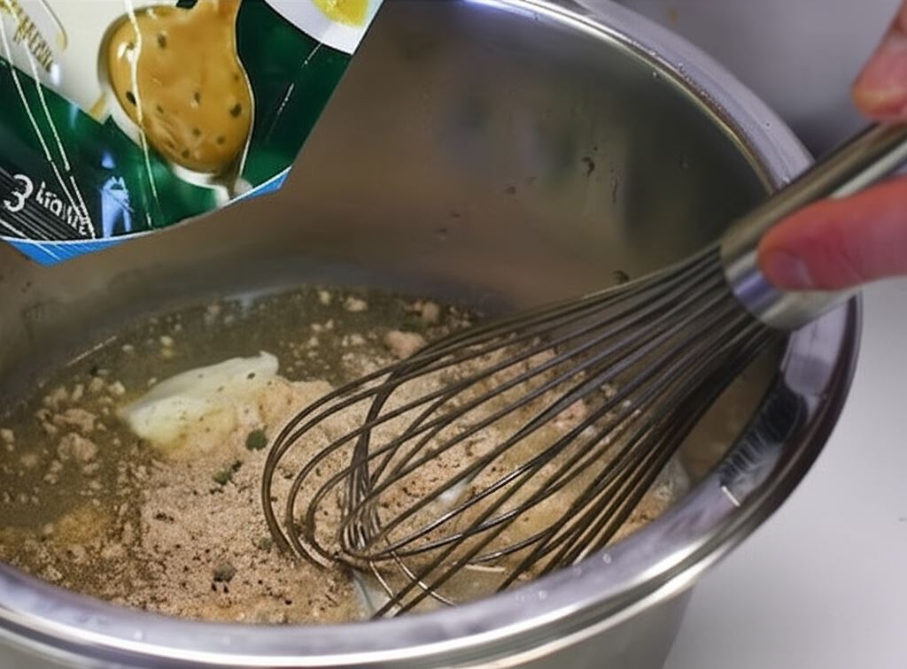 Przygotuj sos do pieczeni według instrukcji na opakowaniu. Serwuj z ugotowanymi szparagami i sosem pieprzowym.