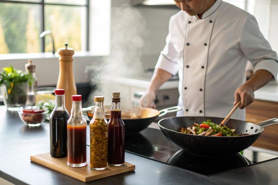 Sos teriyaki oferuje słodko-słony profil z nutą umami. Jest bardziej lepki i słodszy niż sos ostrygowy, ale po rozcieńczeniu odrobiną wody i dodaniu szczypty soli może stanowić dobrą alternatywę, szczególnie w glazurach do mięs i warzyw.