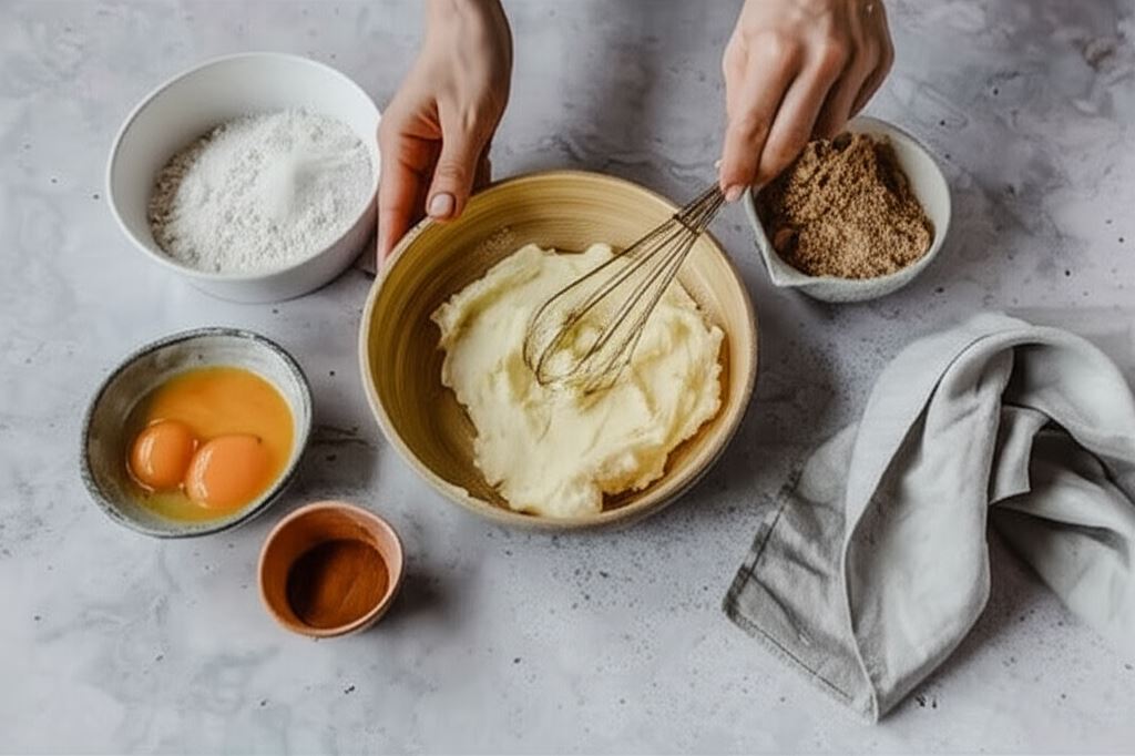 Masło ubijamy z cukrem na puszystą masę.
