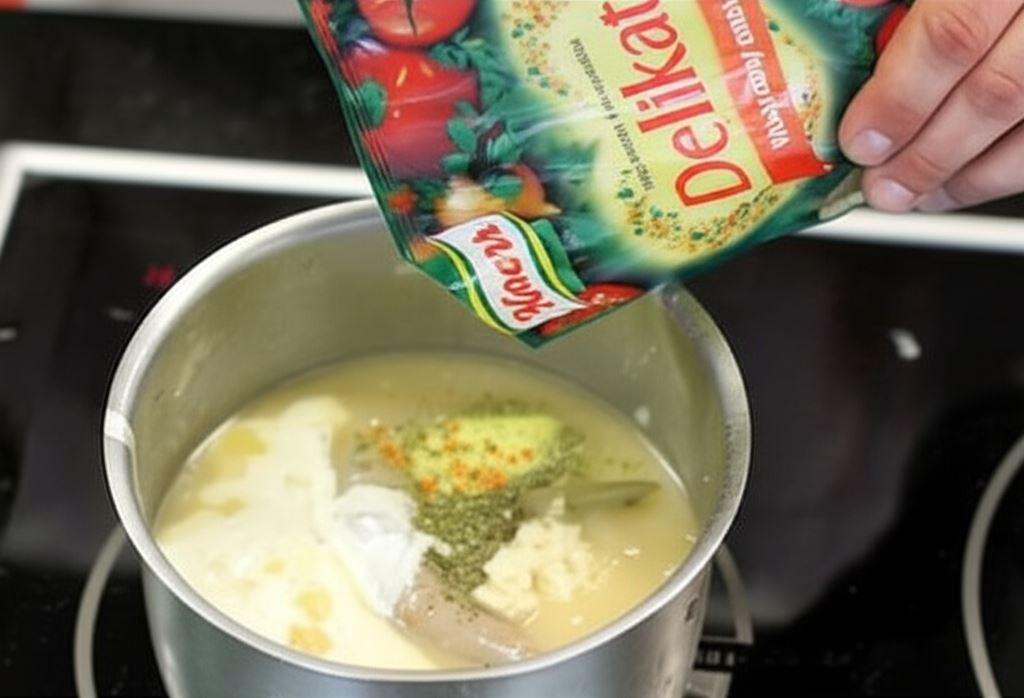 Wsyp śmietanę, chrzan, majeranek, liść laurowy i przyprawę Knorr. Gotuj wszystko na wolnym ogniu przez około 10 minut, dopóki kiełbasa nie stanie się miękka, a sos nieco zgęstnieje. Serwuj z tłuczonymi ziemniakami i posyp posiekaną natką pietruszki.