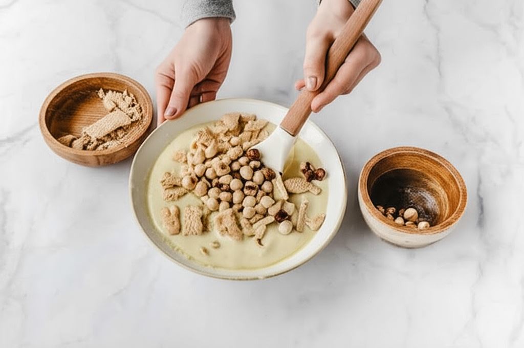 Jasny kolor białego bloku możesz przełamać dodając kolorowe bakalie – suszone morele, żurawinę czy rodzynki. Możesz również eksperymentować z różnymi rodzajami orzechów lub dodać odrobinę skórki pomarańczowej dla cytrusowego aromatu.