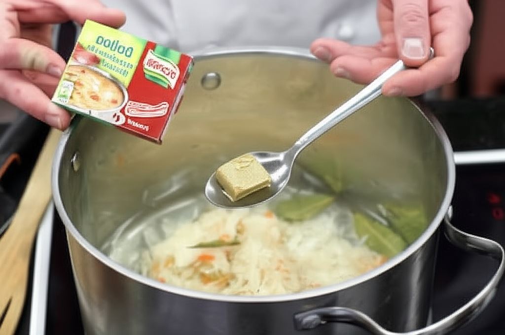 Kapustę ugotuj na miękko w wodzie z liściem laurowym i kostkami Knorr.