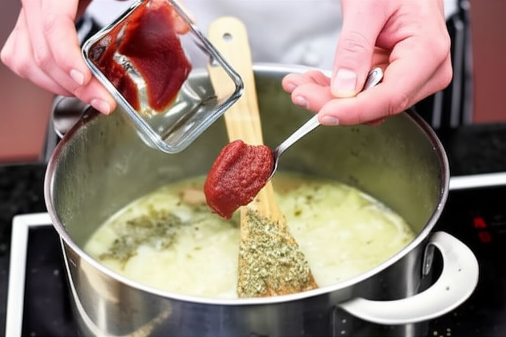 Dołóż koncentrat pomidorowy, majeranek i duś 30 min., dopraw pieprzem według smaku. Serwuj z pieczywem.