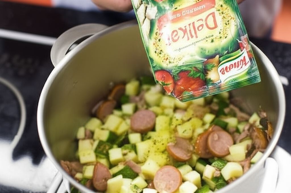 Dodaj kilka łyżek wody, przypraw Delikatem Knorr, solą i pieprzem. Duś przez 5 minut.