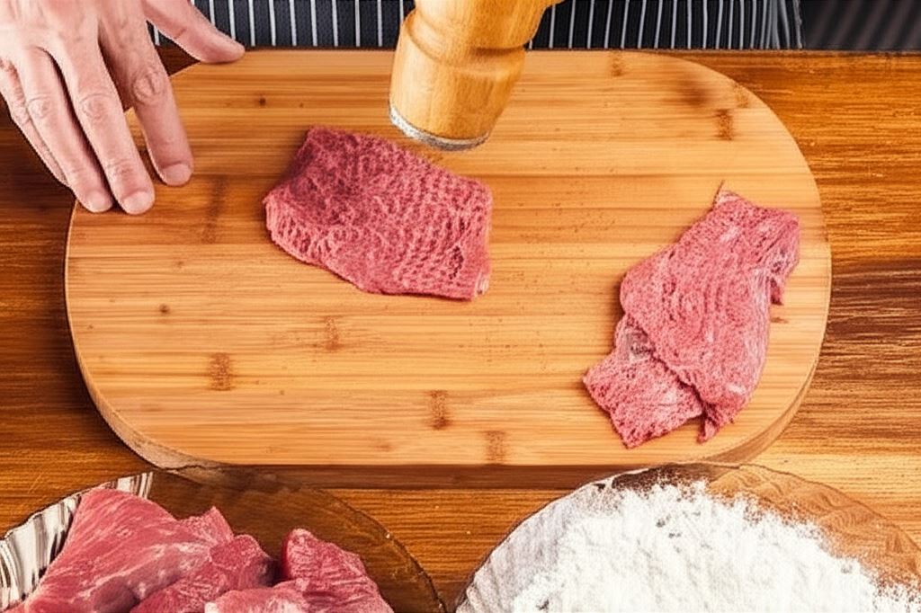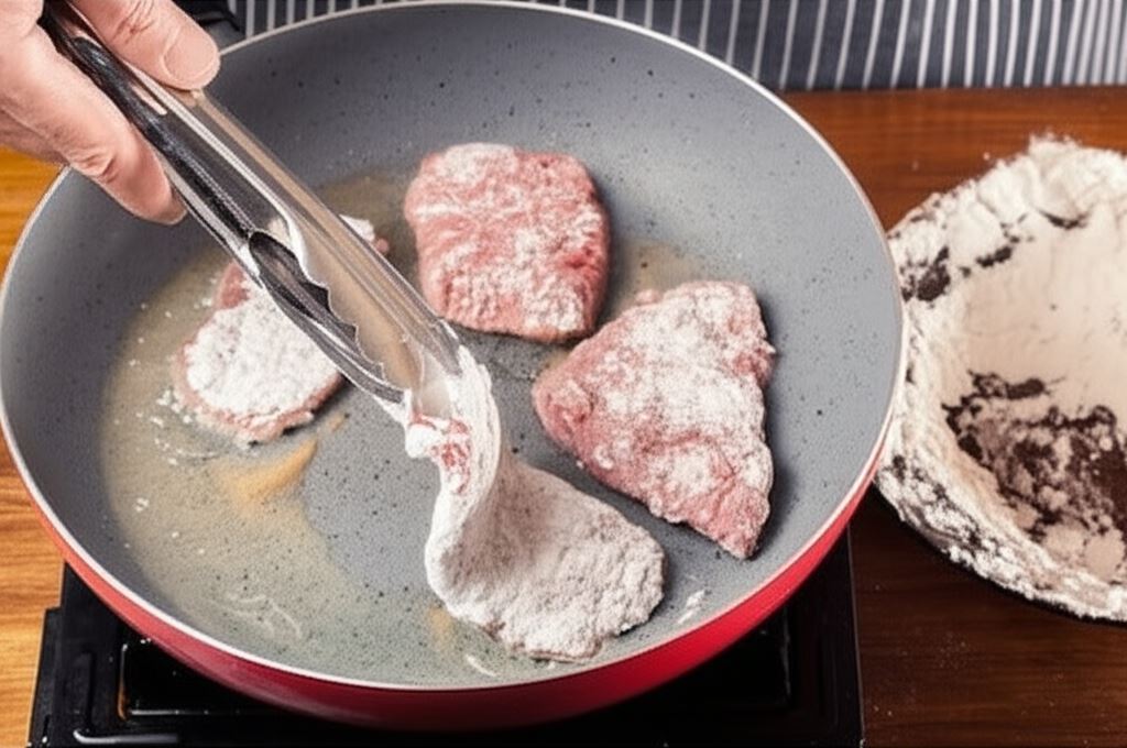 Rozgrzej olej na patelni i zrumień bitki, wcześniej obsypując je mąką.