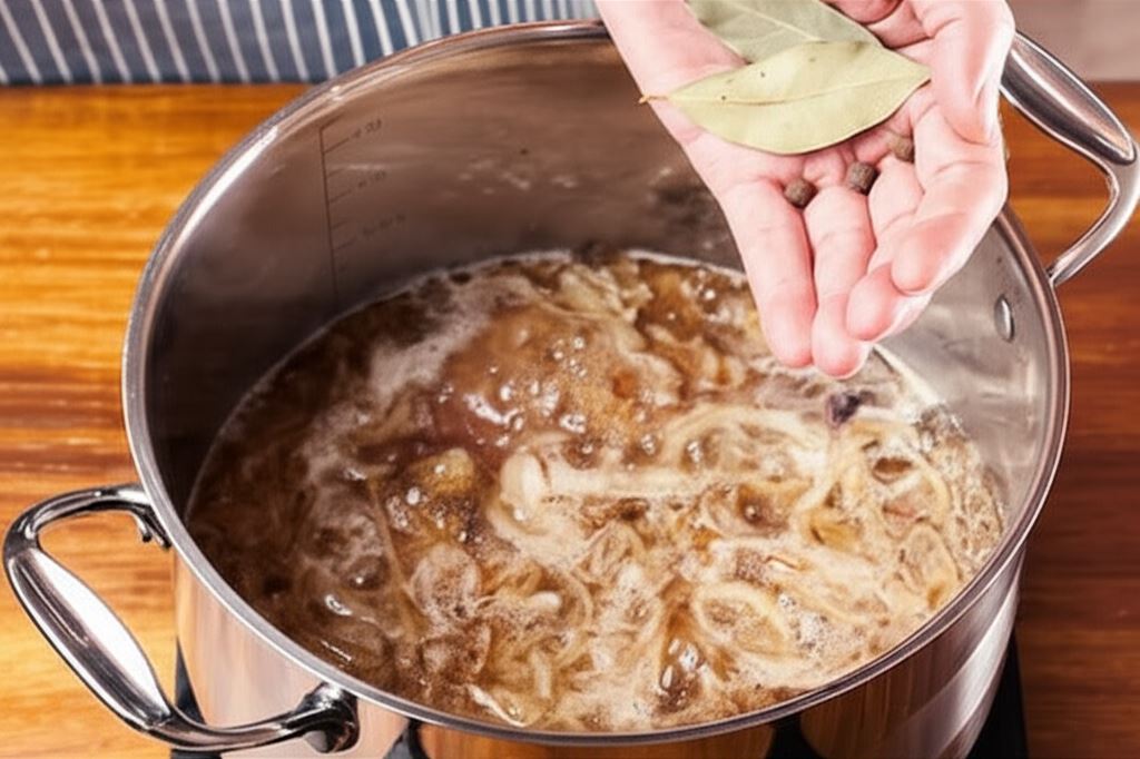 Dodaj bulion, wsyp przyprawy i duś mięso około 20 minut na średnim ogniu.