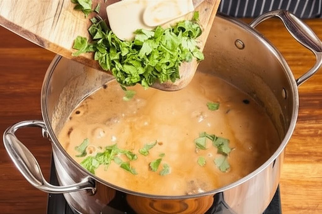 Tuż przed końcem gotowania wsyp posiekaną natkę pietruszki. Serwuj najlepiej z ziemniakami puree albo kaszą.
