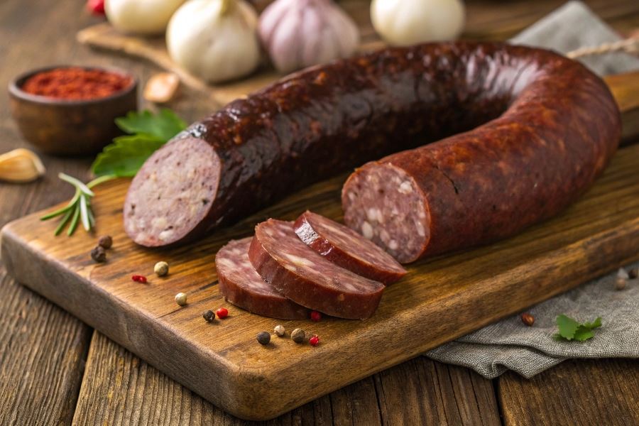 Krupniok śląski natomiast to regionalna specjalność kuchni śląskiej, również należąca do wędlin krwistych. W jego składzie znajduje się krew wieprzowa, kasza (zwykle jęczmienna, rzadziej gryczana), tłuszcz wieprzowy, podroby (głównie płuca, wątroba, serce) oraz charakterystyczny zestaw przypraw z dominującą nutą majeranku. Krupniok wyróżnia się większą zawartością mięsa i podrobów w stosunku do kaszy, co nadaje mu bardziej wyrazisty smak i gęstszą konsystencję.