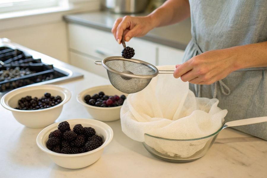 Wskazówka eksperta: Sezonowość ma znaczący wpływ na łatwość usuwania pestek. Jeżyny zbierane w pełni sezonu (sierpień-wrzesień) mają bardziej miękki miąższ, co ułatwia oddzielanie pestek. Owoce z początku i końca sezonu często wymagają więcej pracy ze względu na twardszą strukturę.