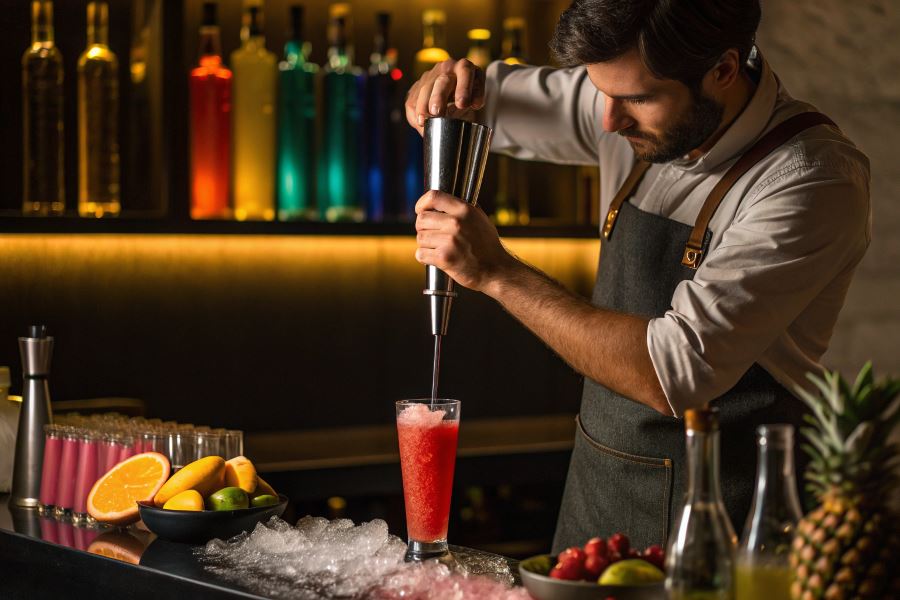 Blender to niezastąpione urządzenie przy przygotowywaniu mrożonych koktajli alkoholowych. Piña Colada zyskuje aksamitną konsystencję dzięki dokładnemu zmiksowaniu rumu, soku ananasowego, mleka kokosowego i kruszonych kostek lodu. Kluczem do idealnej tekstury jest stopniowe dodawanie lodu podczas miksowania na wysokich obrotach.