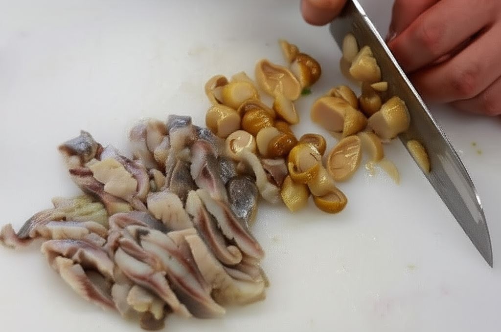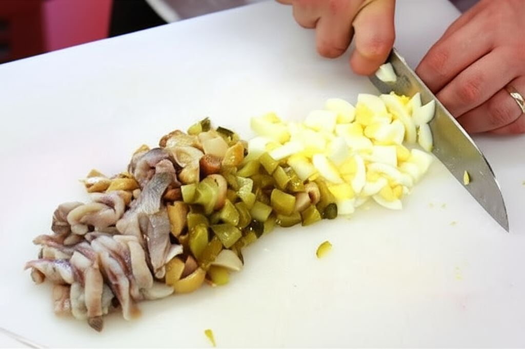 Śledzie potnij na małe kawałeczki.