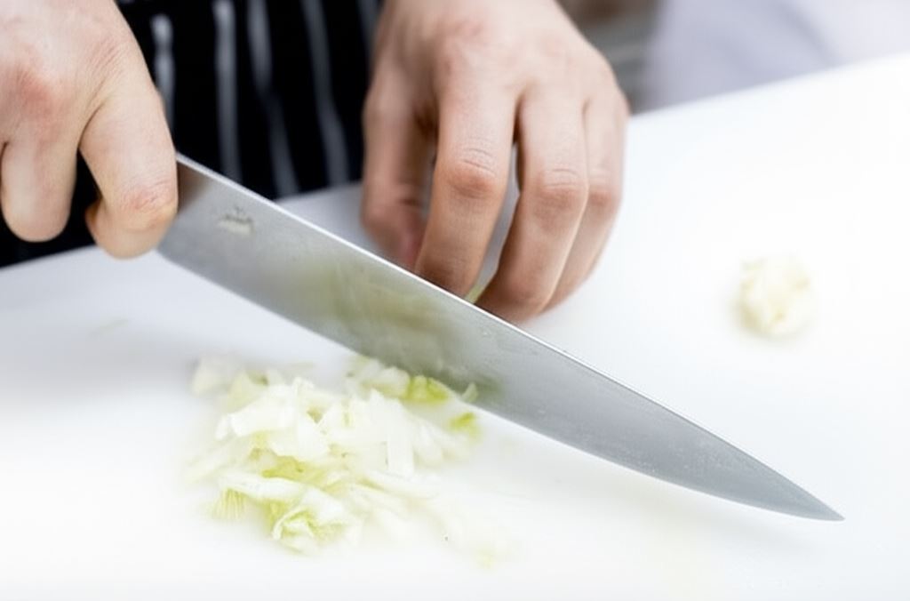 Rozgnieć czosnek, a białą część cebulki drobno posiekaj.
