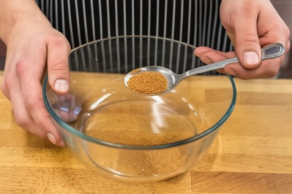W misce połącz 3 łyżki oliwy z przyprawą Knorr i jedną łyżką brązowego cukru.