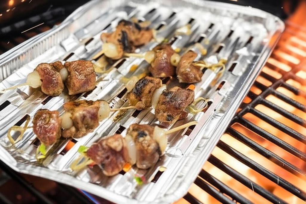 Szaszłyki grilluj na średnio nagrzanym grillu na aluminiowych tackach około 6 minut z każdej strony. Piersi mogą być lekko niedopieczone.