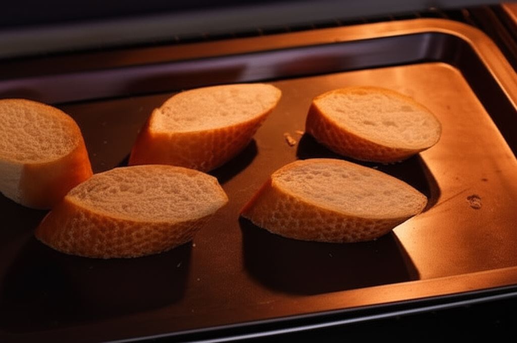 Bagietkę pokrój na kromki o grubości 1 cm i zapiecz w piekarniku na funkcji grill przez ok. 3 min.