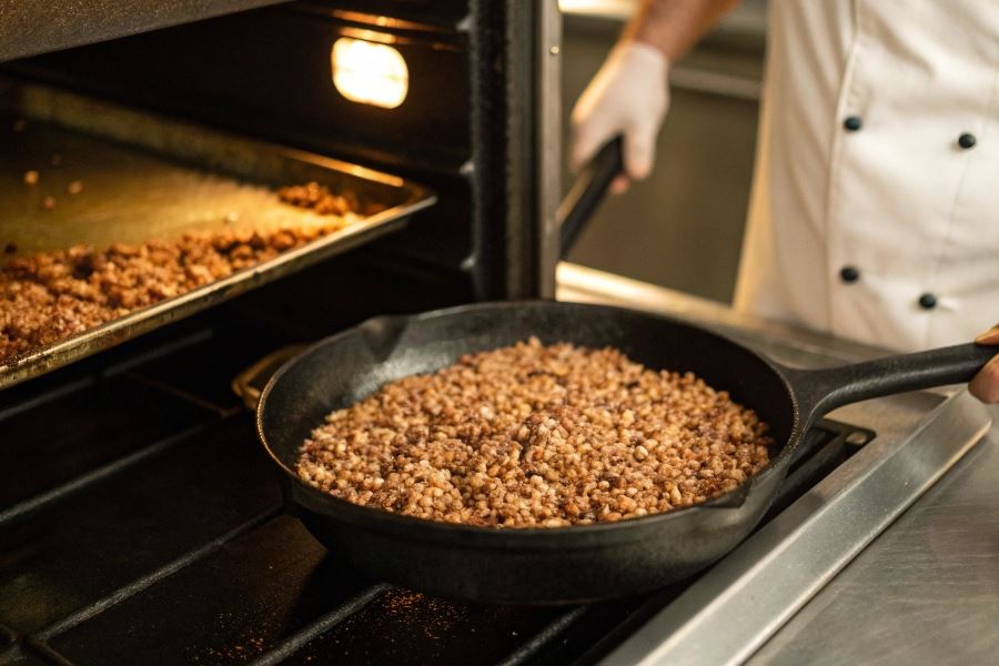 Przygotowanie kaszy gryczanej na patelni to szybsza alternatywa dająca możliwość kontrolowania tekstury i intensywności smaku. Patelnie z powłoką nieprzywierającą lub żeliwne sprawdzają się najlepiej – te pierwsze ułatwiają mieszanie i zapobiegają przywieraniu, drugie zapewniają doskonałe rozprowadzanie ciepła.