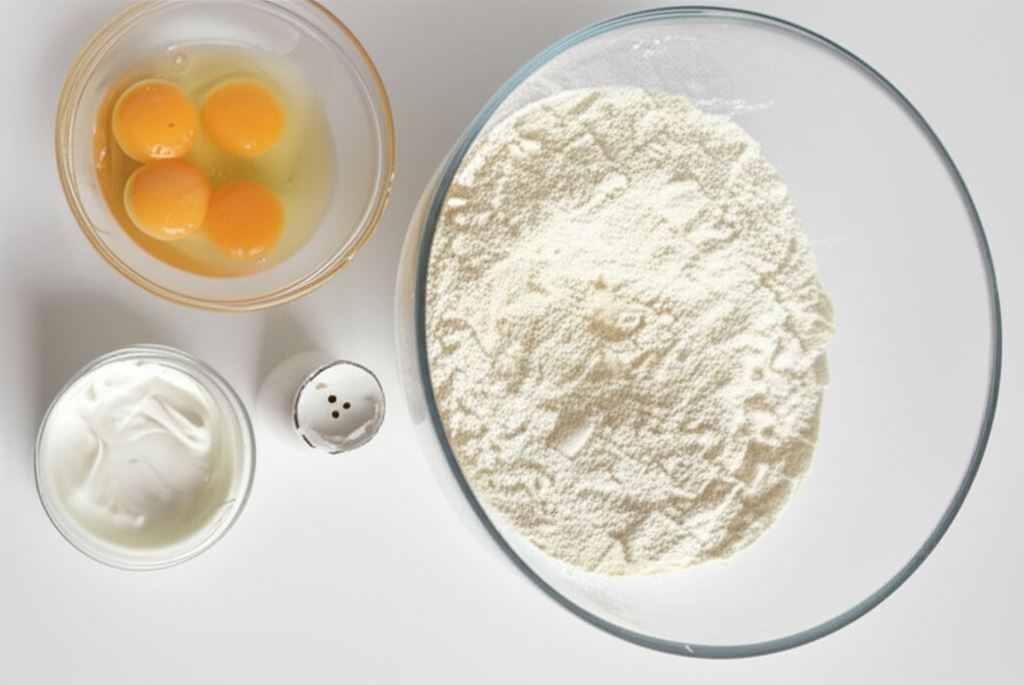Wkładamy żółtka, jajko, śmietanę i sól. Wyrabiamy kulkę z tych składników. Wstawiamy do lodówki na 30 minut.