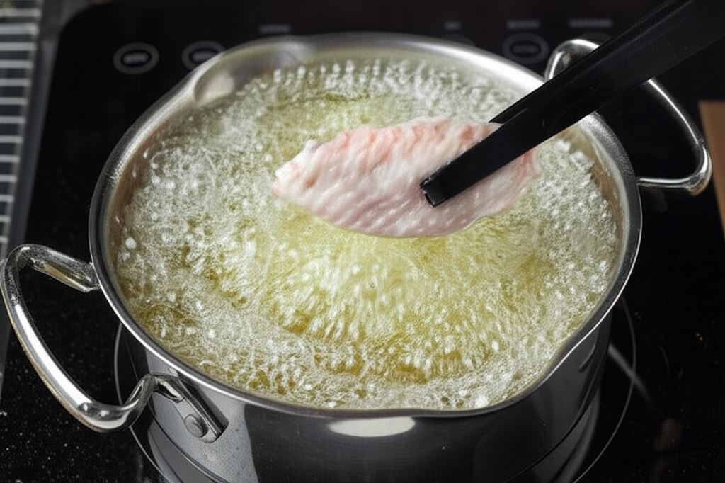 W garnku podgrzej olej do 170*C i smaż skrzydełka przez około 20 min.