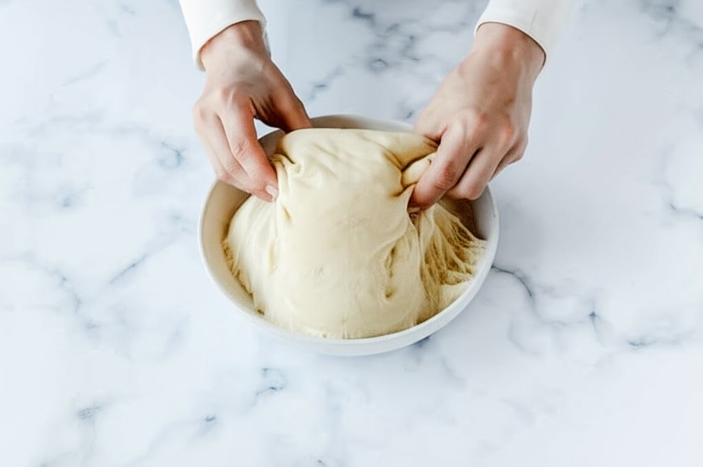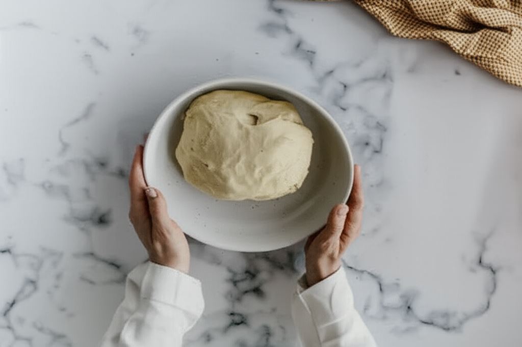 Potem wyciągamy wyrośnięte ciasto z miski.