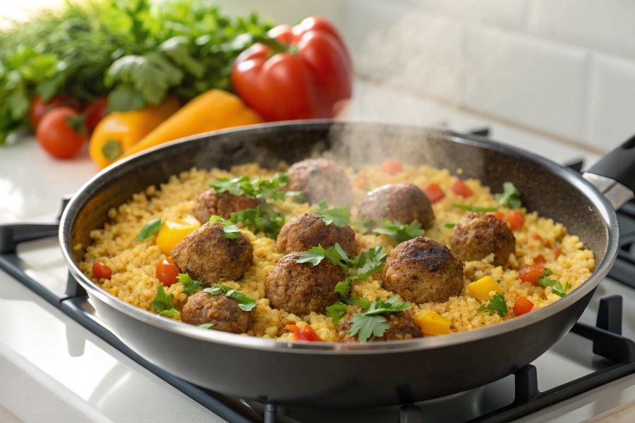 Gotowanie bulguru bezpośrednio na patelni z klopsikami to technika, która pozwala na maksymalne przeniknięcie smaków: