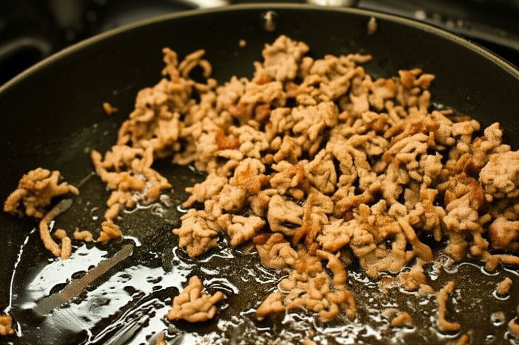 Mięso zrumień na patelni używając rozgrzanego oleju.
