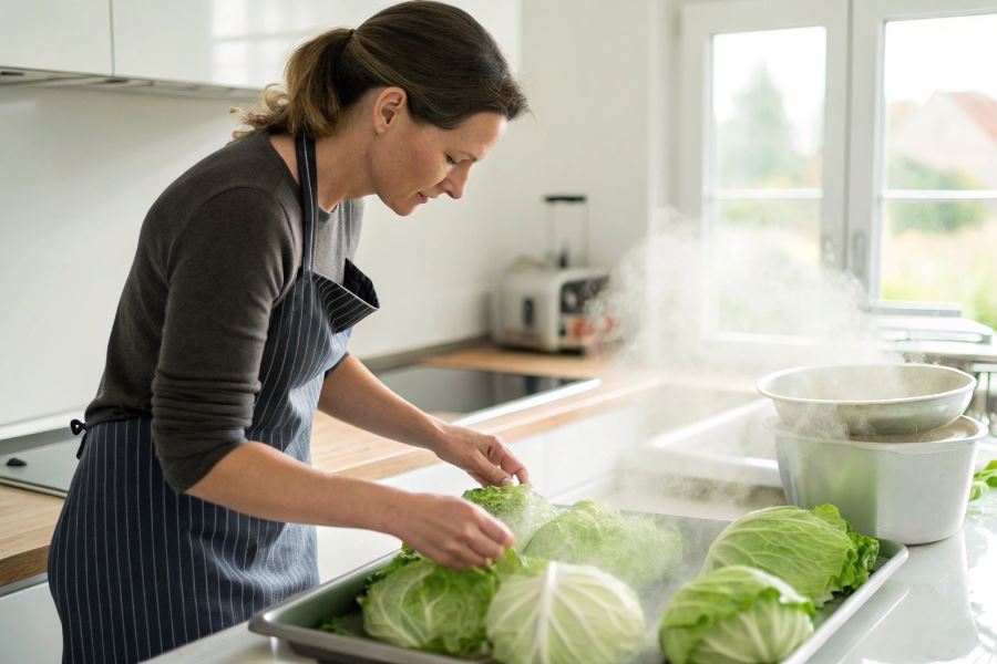 Alternatywna metoda parzenia na parze polega na umieszczeniu główki kapusty w specjalnym naczyniu do gotowania na parze lub w durszlaku nad garnkiem z wrzącą wodą. Ta technika jest szczególnie polecana dla osób, które chcą zachować więcej składników odżywczych w liściach. Parzenie na parze trwa nieco dłużej (około 5-7 minut), ale pozwala na bardziej równomierne zmiękczenie liści bez ryzyka ich przegotowania.