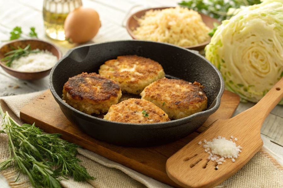 Proces smażenia i serwowania kotletów kapuścianych