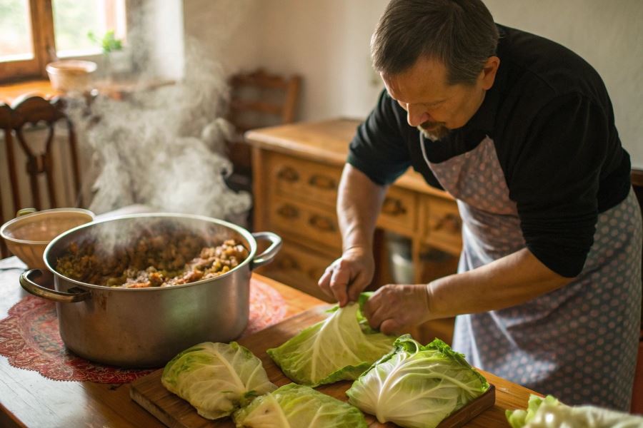 Prawidłowe ułożenie gołąbków w naczyniu jest równie ważne jak technika zawijania. Układaj je ciasno, szwem do dołu, maksymalnie w dwóch warstwach. Między warstwami możesz umieścić plasterki boczku lub liście kapusty dla dodatkowego smaku.