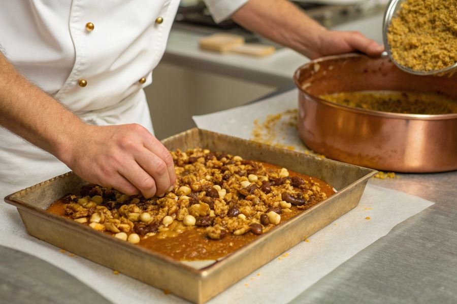Kluczem do idealnej chrupki jest odpowiedni moment studzenia. Zbyt wczesne rozdrobnienie spowoduje, że karmel będzie się kleił, zbyt późne – chrupka może być trudna do pokruszenia.
