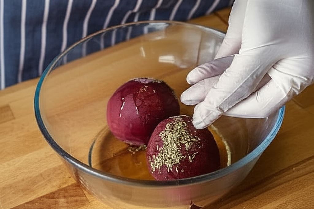 Po tym czasie ostudź buraki i pokrój je na cienkie plasterki.