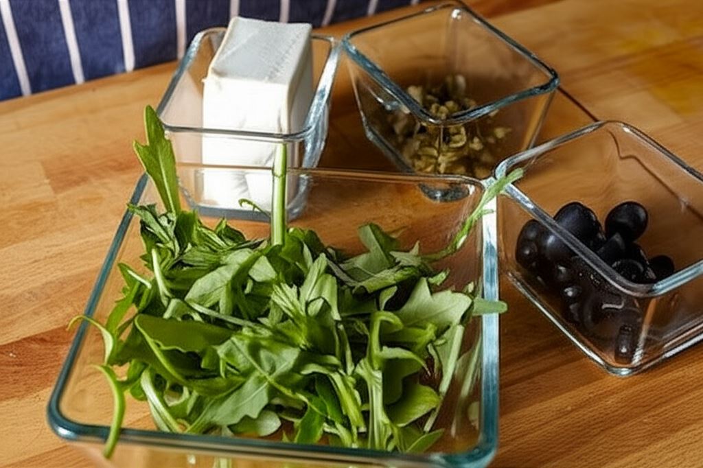 Podczas pieczenia buraków przepłucz rucolę, oliwki przekrój na plasterki, kapary posiekaj, a ser fetę pokrusz.