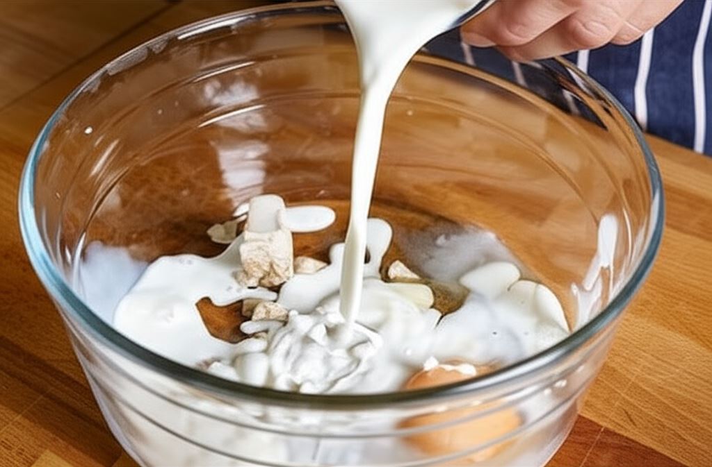 Rozpocznij od przygotowania ciasta. Drożdże wymieszaj z ciepłym mlekiem, wsyp cukier, sól, wlej olej, dodaj jajko i połącz wszystko starannie.