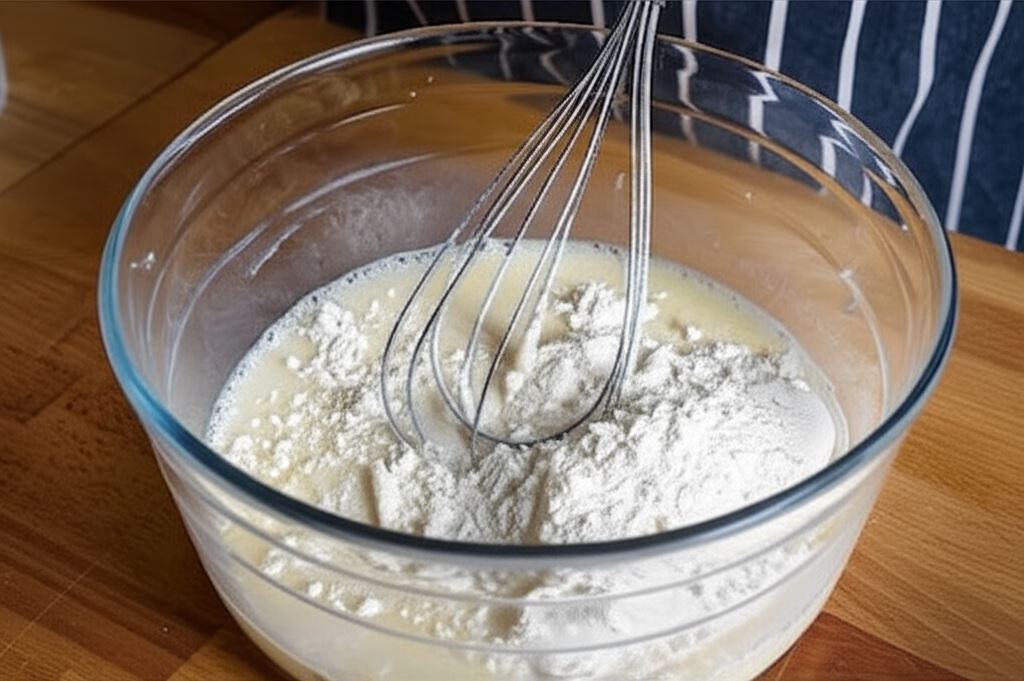 Teraz dodaj mąkę i ponownie zamieszaj. Przygotowane ciasto odłóż w ciepłe miejsce na około 30 minut aż podwoi swoją objętość.