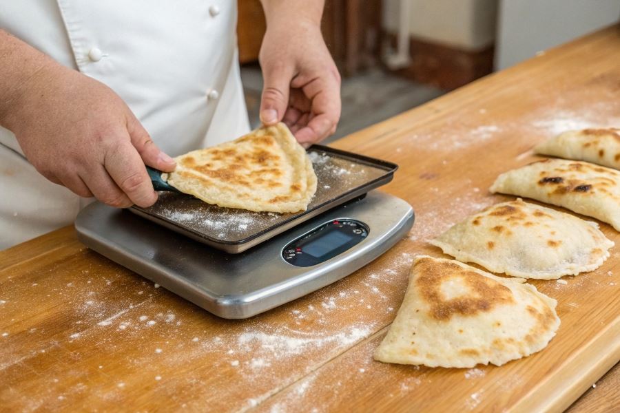 Precyzyjne odmierzenie ilości ciasta na pojedynczego czebureka ma kluczowe znaczenie dla uzyskania idealnej tekstury i smaku tego tradycyjnego przysmaku. Właściwe proporcje zapewniają odpowiednią równowagę między chrupiącą skórką a soczystym nadzieniem.