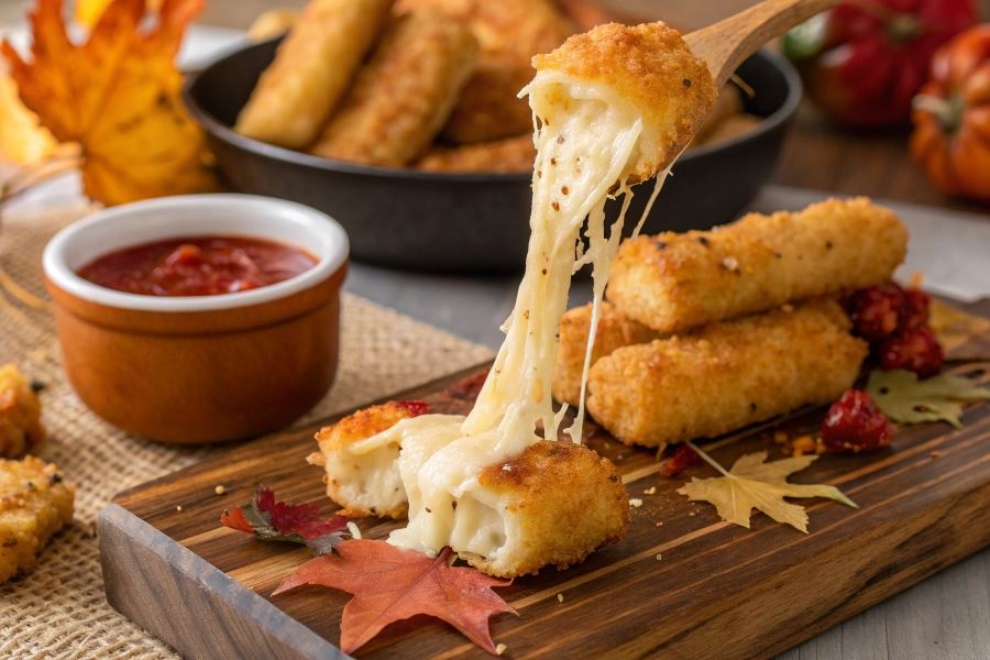 Wskazówka eksperta: Aby uzyskać idealnie ciągnący się ser w paluszkach serowych, warto użyć mieszanki kilku gatunków serów, np. mozzarelli, goudy i cheddara.