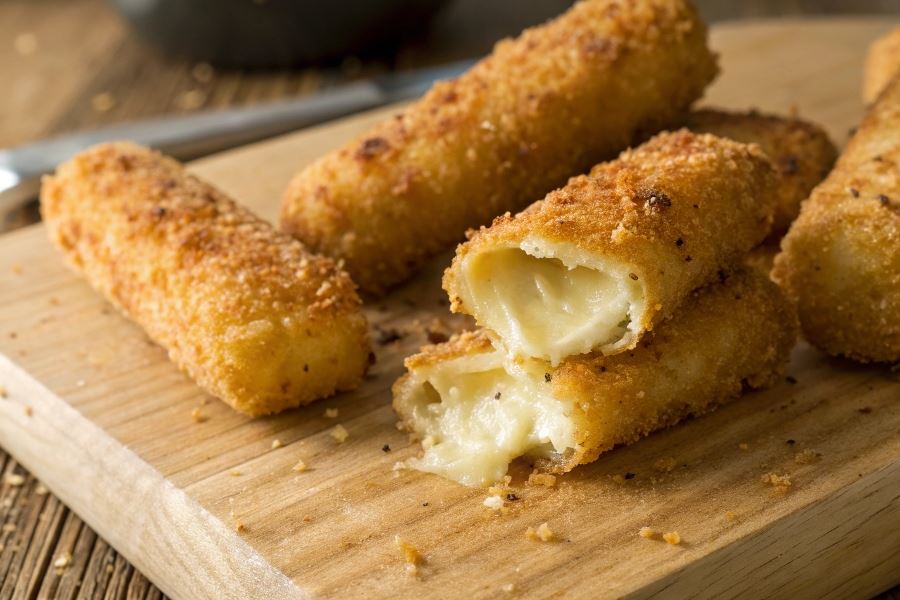 Podawaj paluszki bezpośrednio po przygotowaniu, gdy ser jest jeszcze ciągnący, a panierka chrupiąca. Udekoruj świeżymi ziołami dla dodatkowego aromatu i efektu wizualnego.