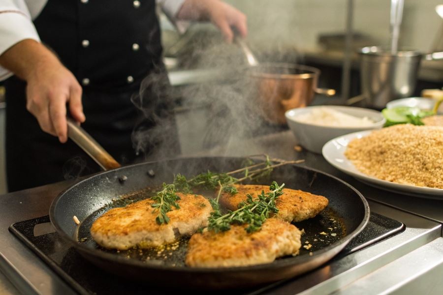 Smażenie na patelni pozostaje najpopularniejszą metodą przygotowania kotletów z kurczaka. Najlepsze rezultaty osiąga się przy temperaturze 175-180°C, używając oleju rzepakowego lub klarowanego masła. Kotlety o grubości 1-1,5 cm wymagają około 4-5 minut smażenia z każdej strony.