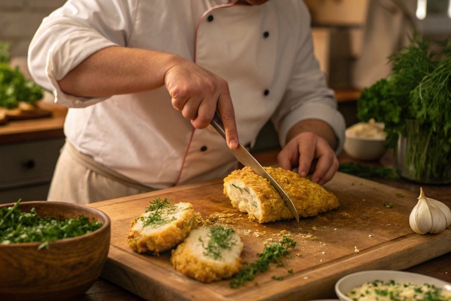 Technika formowania ma kluczowe znaczenie – masło musi być zamrożone przed zawinięciem w mięso, a całość szczelnie zamknięta, by podczas smażenia nie wyciekło. Profesjonaliści stosują metodę podwójnego panierowania, która gwarantuje szczelność powłoki.
