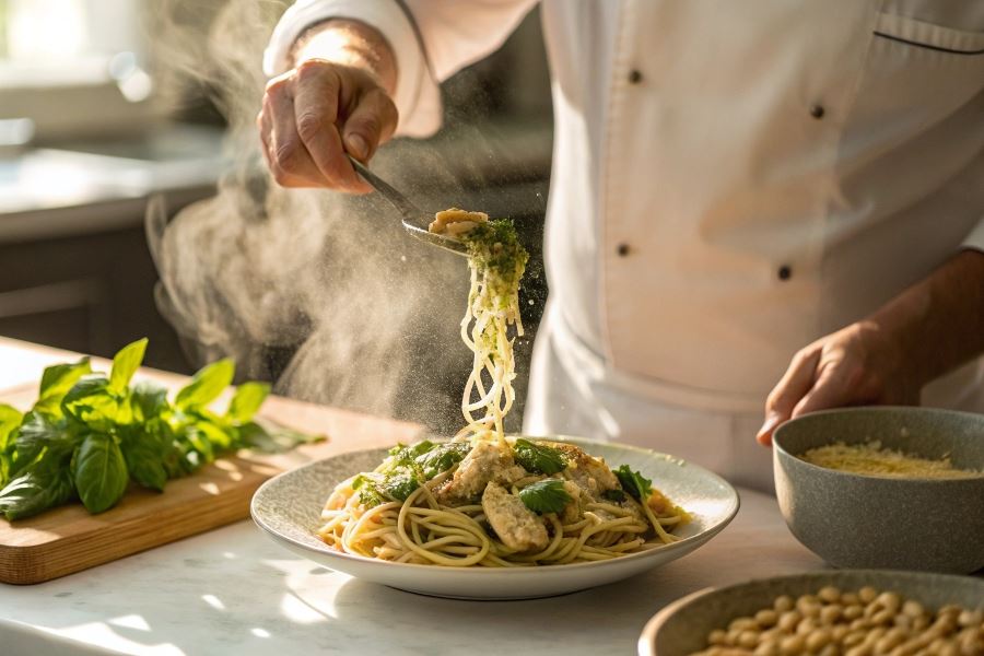 Autorskie przepisy na makaron z kurczakiem i różnymi rodzajami pesto