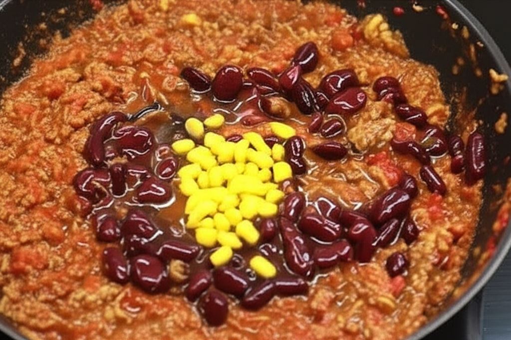 Potem wsyp czerwoną fasolę i kukurydzę oraz Bulionetka wołowa Knorr, która uwydatni smak potrawy. Dolej 600 ml wrzącej wody, zredukuj ogień i gotuj danie 25 minut.