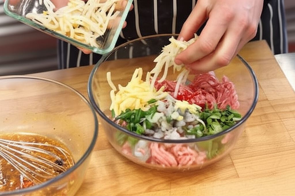 W obszernej misce wymieszaj mięso z pędami bambusa, kiełkami, resztą składników oraz przypraw wcześniej przygotowanym Fixem. Dopraw do smaku olejem sezamowym.