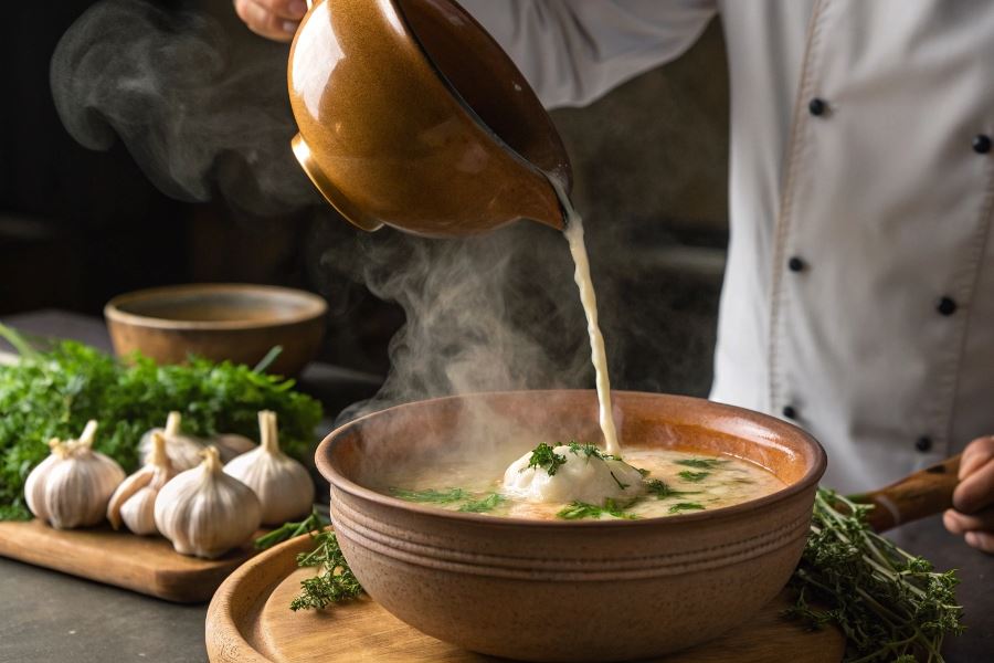 Sekret wyjątkowego smaku zupy krem chkmeruli tkwi w równowadze między intensywnością czosnku a kremowością orzechów. Zbyt krótkie prażenie orzechów nie uwolni ich pełnego aromatu, a zbyt długie nada goryczki.