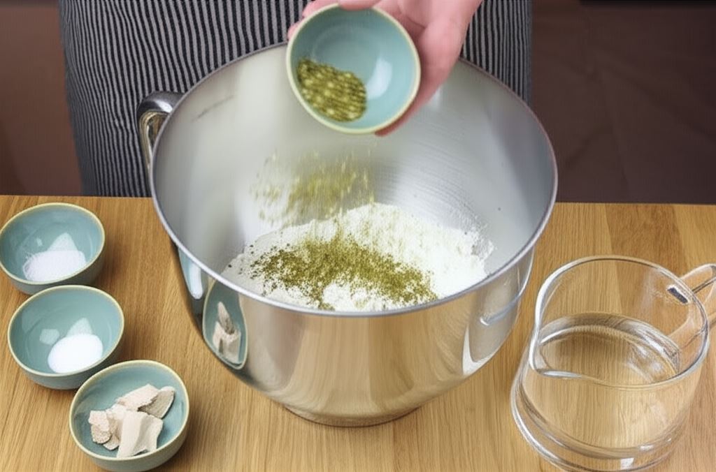 Umieść mąkę, drożdże, wodę, sól, cukier oraz przyprawę Knorr w misie robota kuchennego.
