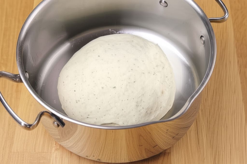 Uformuj kulki i umieść w wysokim garnku posmarowanym olejem. Garnek nakryj pokrywką i odstaw w ciepłe miejsce na 1 godzinę.