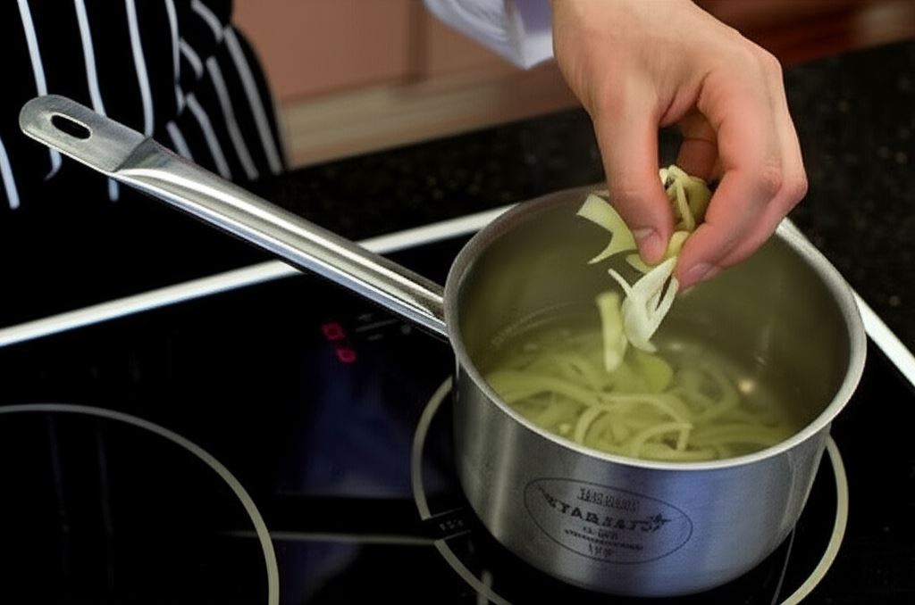 W uzyskanym wywarze wymieszaj Barszcz czerwony ekspresowy Knorr i odłóż go na bok, aby ostygł. Pokrój pęczek rzodkiewek na półplasterki.
