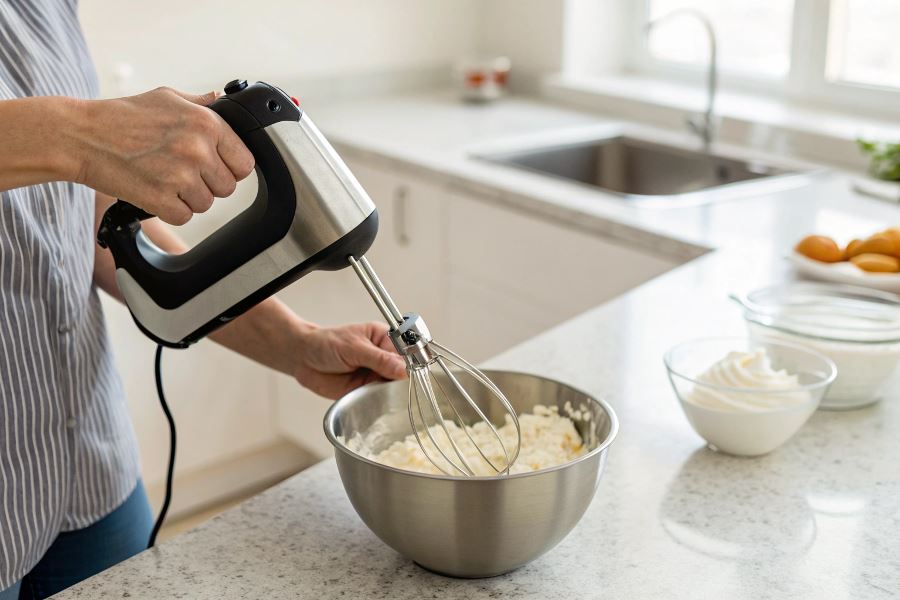 - Trzepaczki – niezbędne do ubijania białek, śmietany i lekkich mas