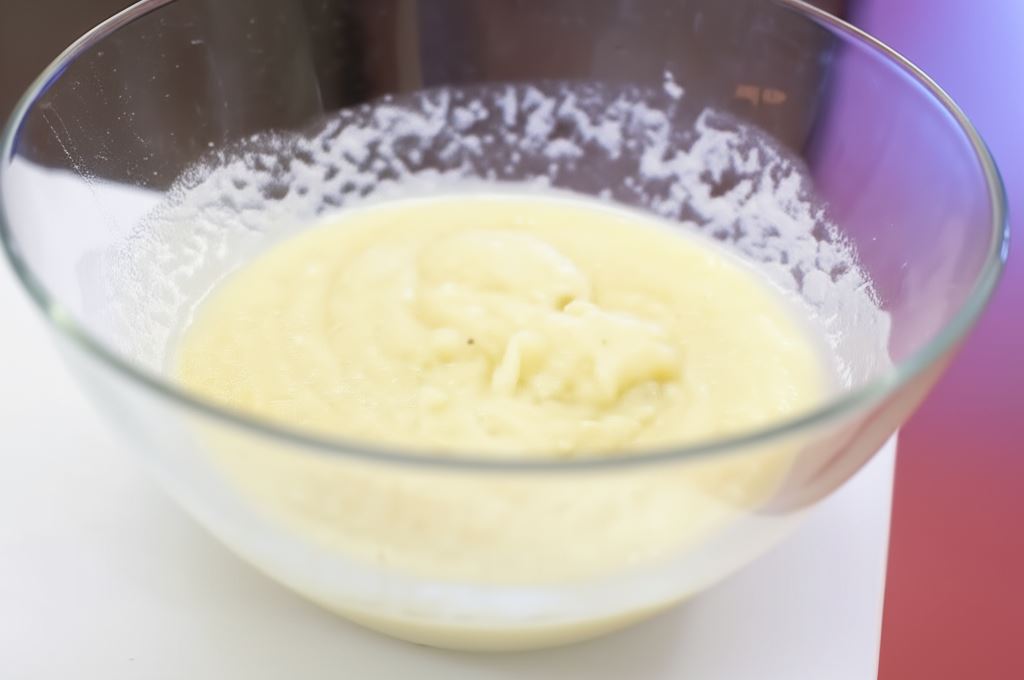 Przyszykuj obszerną miskę, w której będziesz łączyć składniki na placki. Dodaj do niej zawartość opakowania Fix Chrupiące placki ziemniaczane Knorr. Połącz ją z 600 mililitrami zimnej wody. Dodaj do miski również jedno jajko i ponownie starannie wymieszaj, aby wszystkie składniki się połączyły. Odstaw masę na 10 minut w temperaturze pokojowej. W tym czasie powinna nieco zgęstnieć.