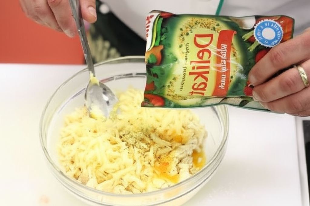 Przesiej mąkę i posiekaj ją z zimnym, pociętym masłem, wsyp kilka łyżek zimnej wody, dodaj szczyptę przyprawy Knorr, utarty ser, pieprz kajeński oraz rozmaryn, zagnieć na jednolite ciasto.
