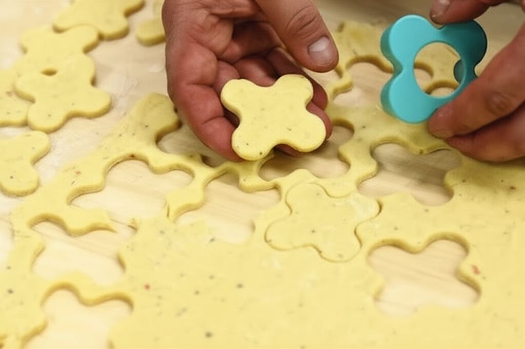 Eksperymentuj z kształtami i dodatkami! Możesz dodać suszone pomidory, oliwki czy inne zioła jak tymianek lub bazylię. Dla ostrzejszego smaku zwiększ ilość pieprzu kajeńskiego. Ciasteczka możesz również posypać przed pieczeniem ziarnami sezamu lub maku dla dodatkowej tekstury i smaku.
